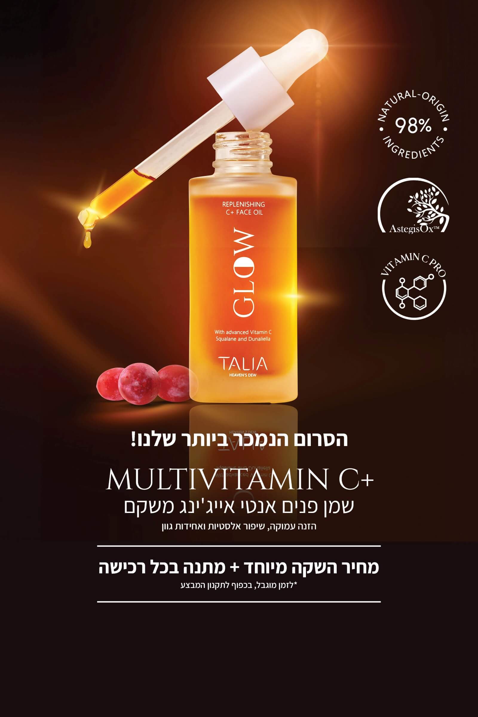 שמן פנים ויטמין סי פעיל להזנה עמוקה, מיצוק והבהרת כתמים